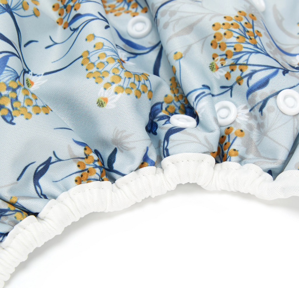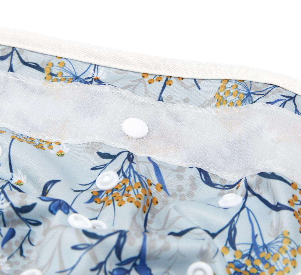 • An outer layer of breathable, waterproof polyurethane laminated polyester (PUL) keeps wetness contained